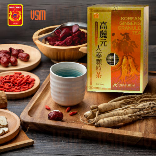 Trà Hồng Sâm Hàn Quốc Ginseng House - Korean Red Ginseng Granule Tea là sản phẩm được chế biến từ hồng sâm Hàn Quốc, nổi tiếng với nhiều lợi ích cho sức khỏe. Dạng trà