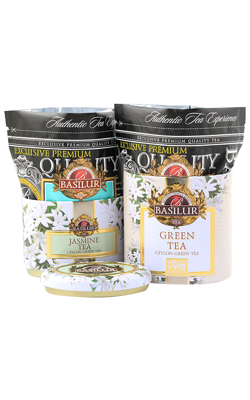 Trà xanh Basilur Jasmine & Green Tea được kết hợp từ 100% búp trà xanh Ceylon với những nụ hoa nhài e ấp đã tạo ra một thức uống tinh tế nhẹ nhàng. Trà xanh Basilur Jasmine & Green Tea có màu vàng xanh nhạt, hương hoa nhài nhẹ nhàng phảng phất kéo dài kết hợp với hậu vị chát ngọt của trà xanh vùng Ceylon để lại cho bạn những trải nghiệm khó quên. 100g trà được đóng gói trong một túi giấy bạc có khóa kéo và sau đó cho vào hộp thiếc được thiết kế thủ công đẹp mắt bởi đội ngũ nhà Basilur .