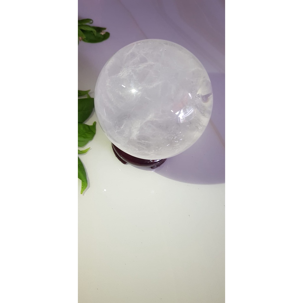 ✨Trái Bi Phong Thủy May Mắn Thạch Anh Trắng Trong tự nhiên Mới bóng đẹp đế gỗ Size 8,5cm x cao 10cm hợp anh chị mệnh Kim mệnh Thủy đặt ngay bàn làm việc, nhà, công ty ạ