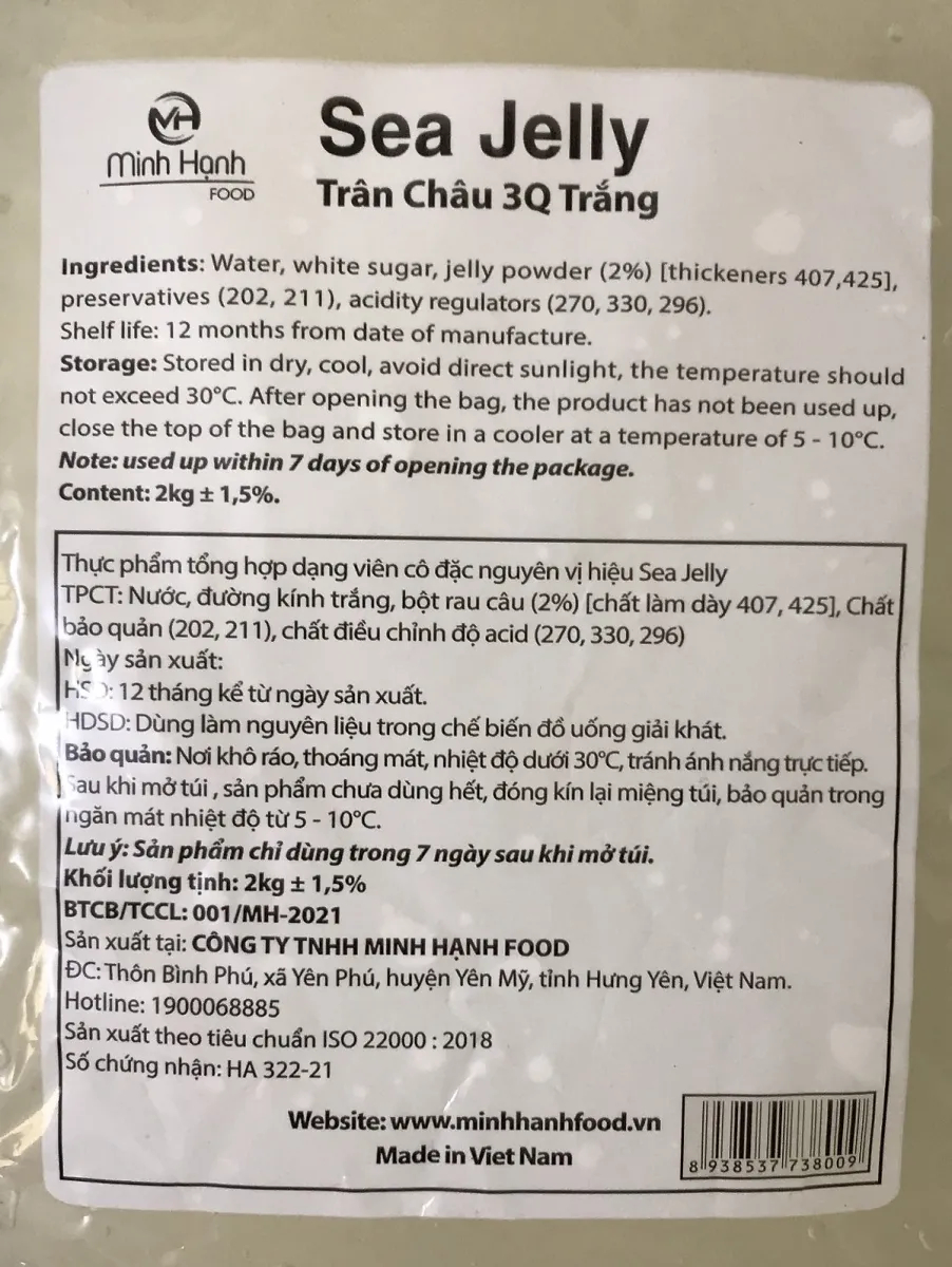 Trân Châu 3Q Sea Jelly Trắng/ Thạch 3Q Ngọc Trai Sea Jelly – 2kg