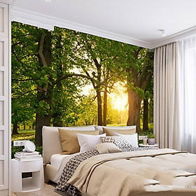 Hoàn thiện tranh dán tường 3D phong cảnh rừng cây bình minh rất đẹp