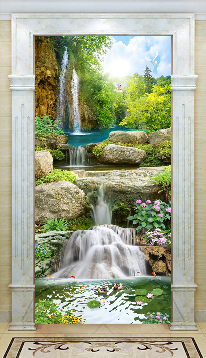 Tranh dán tường 3D thác nước tự dán rất dễ dàng