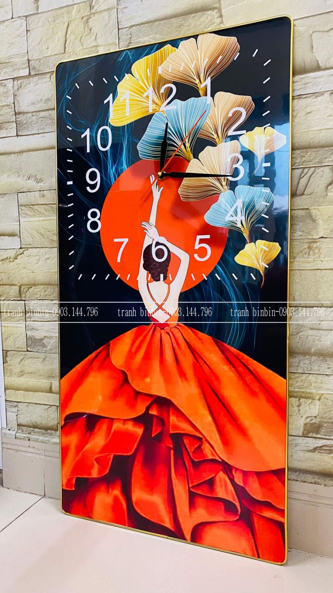 ✨Tranh đồng hồ tráng gương - tranh đồng hồ treo phòng khách - phòng ngủ - nhà hàng - khách sạn - tranh đồng hồ tráng gương cô gái - tặng đinh 3 chân