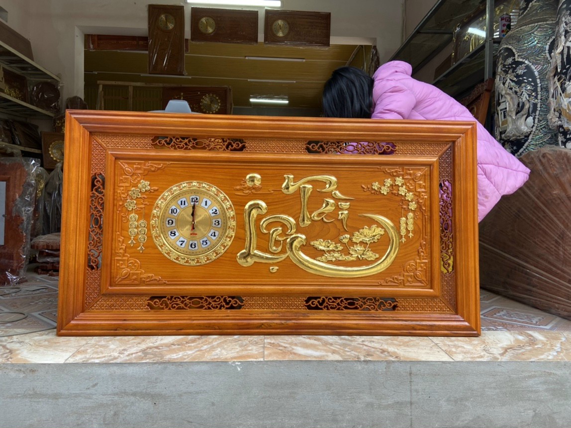 ✨Tranh đồng hồ treo tường khắc chữ tài lộc bằng gỗ gõ đỏ kt 67×127×4cm