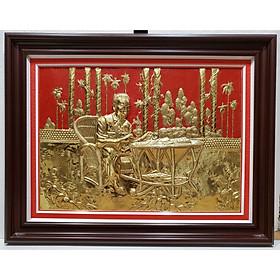 ✨Tranh đồng vàng nguyên chất -Bác Hồ ngồi làm việc trong vườn hoa phủ chủ tịch