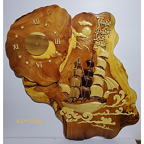 Tranh gỗ ghép nghệ thuật - Thuận Buồm Xuôi Gió Chất liệu gỗ Hương thuộc dòng gỗ quý án máy đồng hồ chạy kim trôi Kích thước 65*70cm