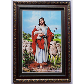 Ảnh gốc in dầu Chúa jiesu chăn cừu Chất liệu tranh in dầu trên màng lụa cao cấp được cán phủ lớp màng PE bảo vệ bề mặt tranh, dán ép trên tấm pormex dày