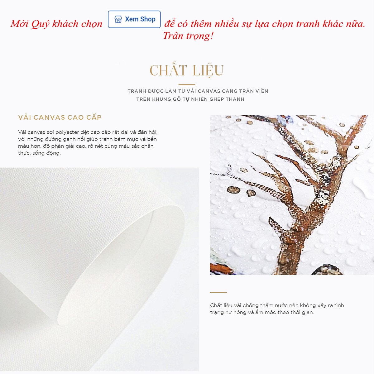 Tranh in trên vải canvas hội họa Kích thước: 60x40cm Tấm lưng bằng gỗ HDF lõi xanh nhập khẩu. Khung vật liệu composite. Không bị ảnh hưởng bởi nước, ẩm mốc. Tặng kèm đinh 3