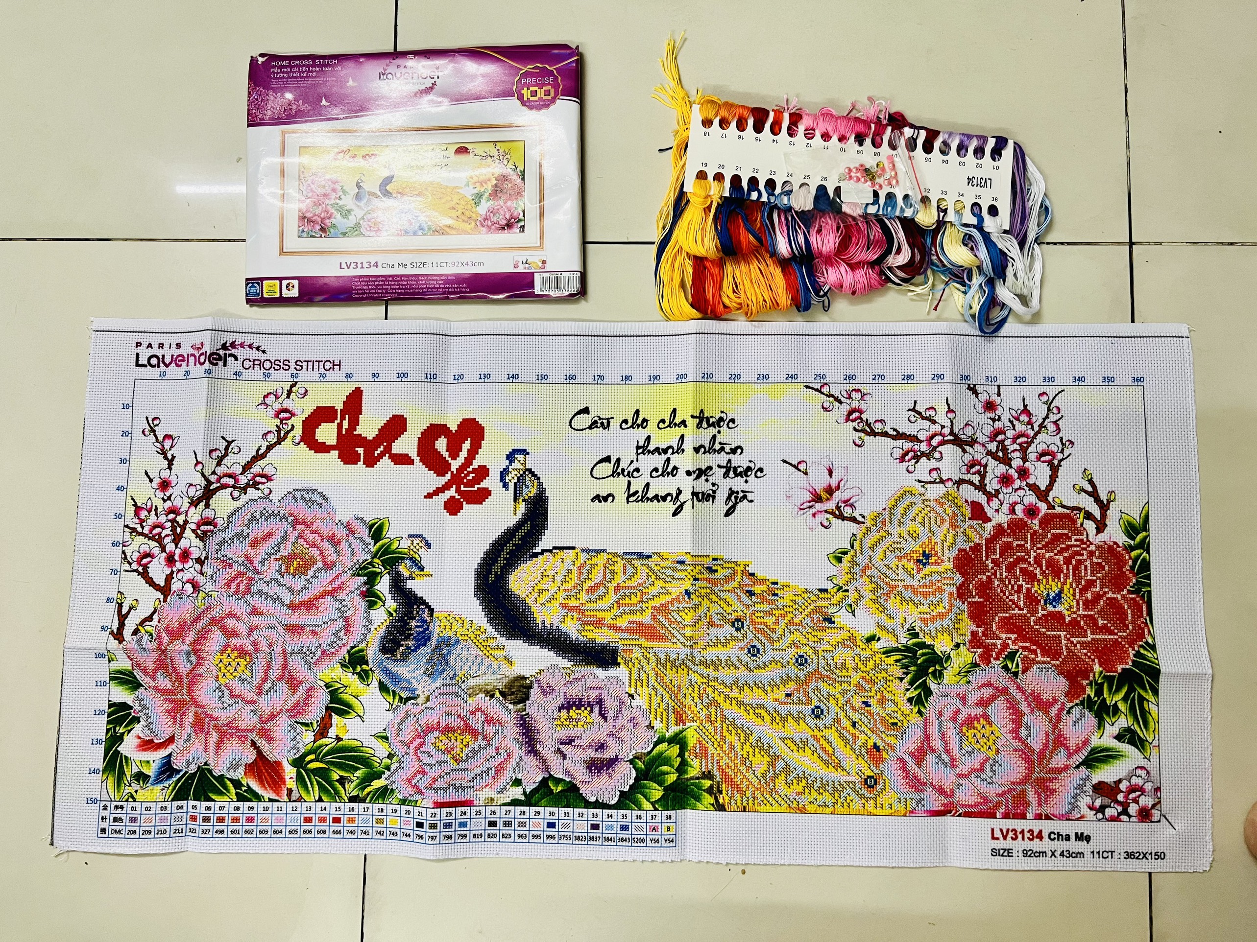 ✨Tranh thêu chữ thập Cha mẹ LV3134, kích thước 92 x 43 cm
