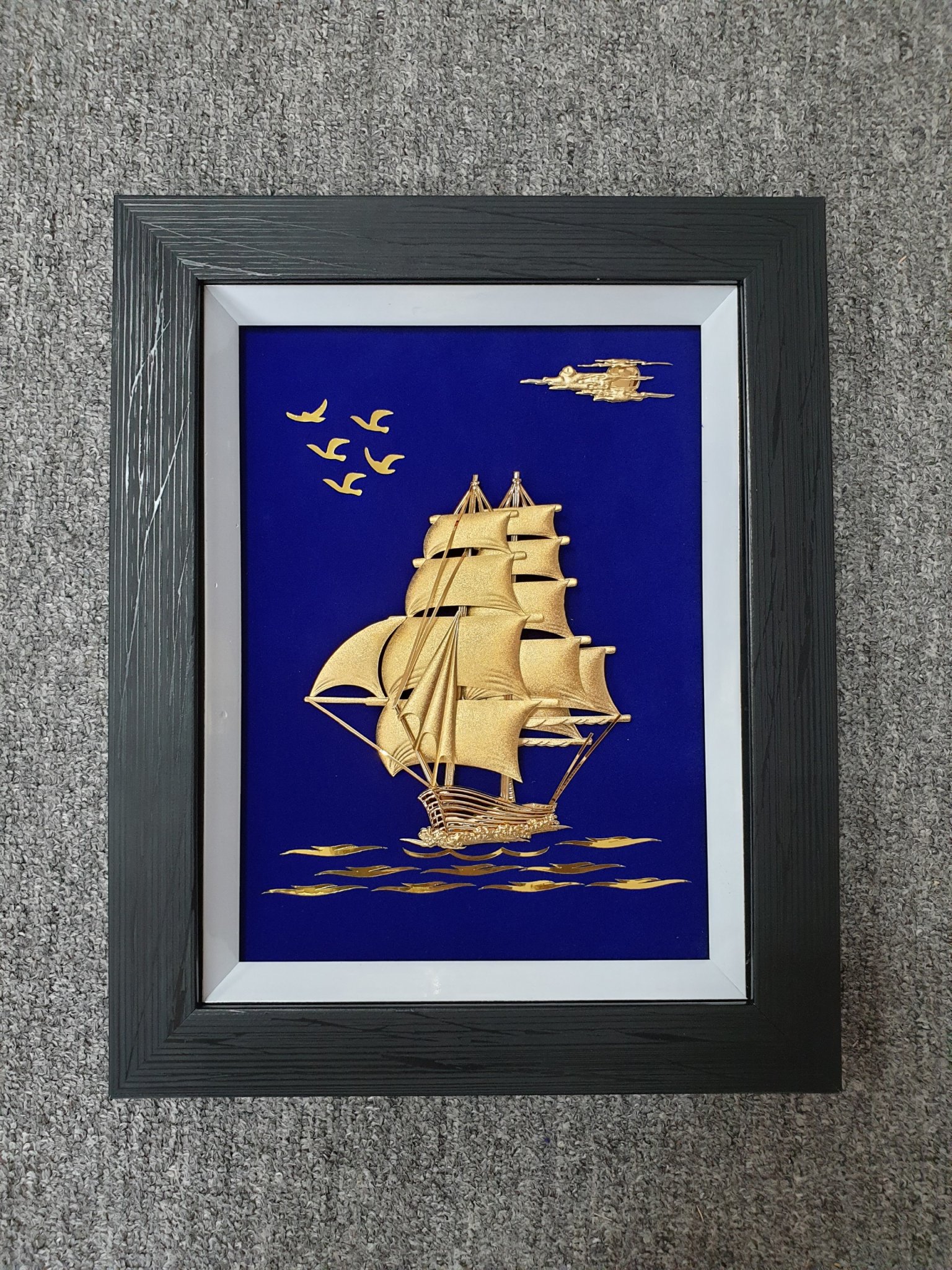 Tranh tặng doanh nhân thuyền thuận buồm xuôi gió dát vàng 24K