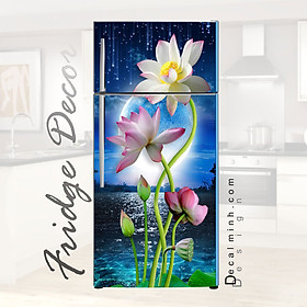 ✨Tranh trang trí tủ lạnh | Decal dán tủ lạnh 3D mẫu hoa sen