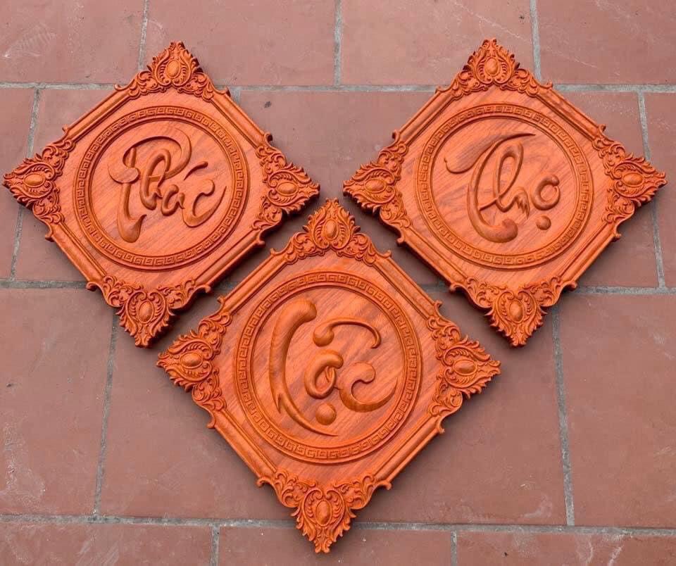 Bộ tranh Phúc Lộc Thọ - gỗ hương đỏ - vuông 45 - Giá chỉ 2.5tr
