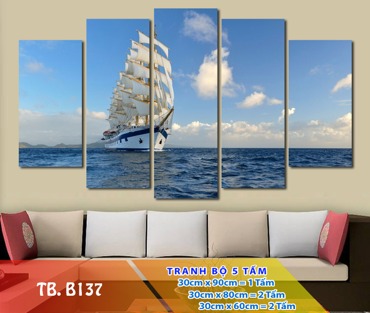 THÔNG TIN KÍCH THƯỚC GIỚI THIỆU TỔNG QUAN Tranh treo tường biển B137 với hình ảnh thuyền buồm vượt sóng biển xanh mang lại vẻ đẹp tươi mát, hiện đại cho không gian. Rất thích hợp treo phòng khách, phòng làm việc đem lại một không gian hiện đại đầy độc đáo cho gia chủ, tranh biển B137 là bức tranh đặc biệt xuất sắc về màu sắc cũng như cách bố trí rất tinh tế. Chất ượng hoàn thiện tuyệt vời với chất liệu gỗ MDF phủ melamine cao cấp cùng chất liệu giấy ảnh phủ kim sa độc quyền.