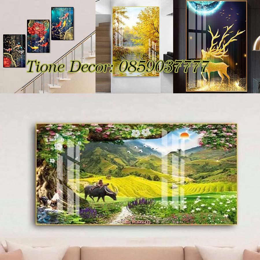 Tranh treo tường làng quê Việt Nam yên bình - Kích thước của tranh : Kích thước : 45x70cm - 50x80cm - 60x100cm - 70x120cm - Chất liệu : Tráng gương - Khách hàng muốn
