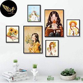 ✨Tranh treo tường trang trí phòng khách, phòng ngủ,CÔ GÁI NHỎ XINH XẮN Tặng kèm khung và đinh ba chân treo tranh chuyên dụng PVP-TP219