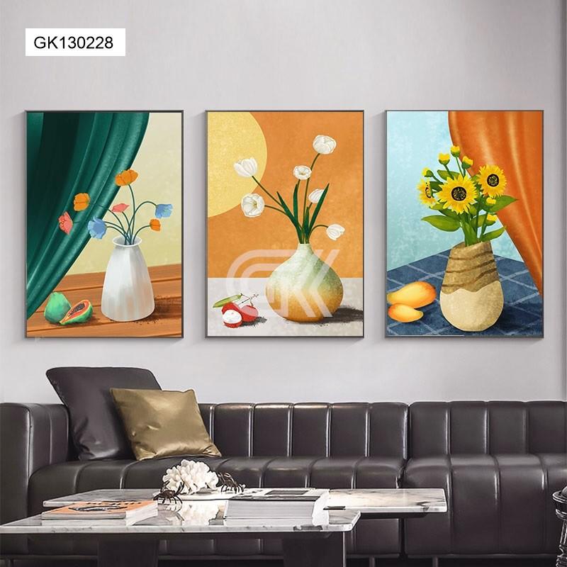 ✨Tranh treo tường, tranh canvas bộ 3 tấm mẫu tranh hoa trừu tương kèm khung cao cấp.