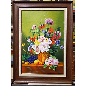 TRANH VẼ SƠN DẦU TĨNH VẬT BÌNH HOA CHẤT LIỆU TRANH ,VẼ SƠN DẦU TRÊN VẢI TOAN KHUNG TRANH MÀU VÂN GỖ COMPOSITE CAO CẤP KÍCH THƯỚC PHỦ KHUNG 82*112CM