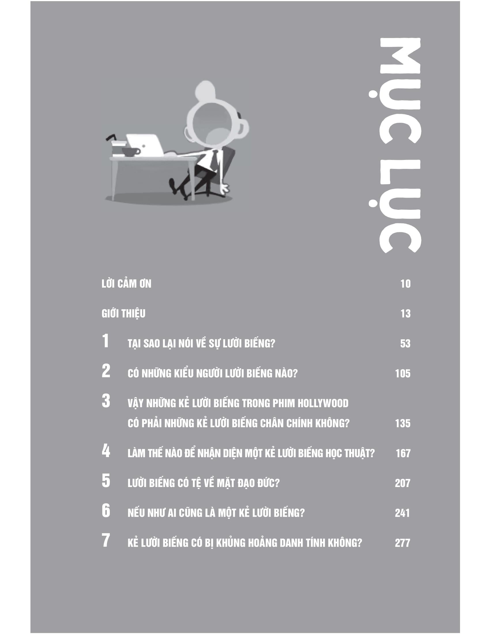 Trái ngược lại với văn hóa phát huy hết hiệu suất làm việc của chúng ta, Alison Suen cảm thấy thật nực cười khi chúng ta luôn chỉ trích kẻ lười biếng – những cá nhân chỉ làm cho qua chuyện để được yên thân. Bà đưa ra phân loại những kiểu chỉ trích người lười biếng thường thấy, và biện luận rằng những đánh giá trên sai, hoặc là tiền đề của những đánh giá đó có vấn đề. Tuy cuốn sách này bào chữa cho sự lười biếng, nhưng nó không hề bênh vực lối sống lười biếng và nâng tầm nó lên thành chìa khóa hướng đến điều gì đó tốt đẹp hơn (như bước tiến mới của văn hóa hay sự tự giác ngộ bản thân gì đó), như một vài học giả vẫn nói.