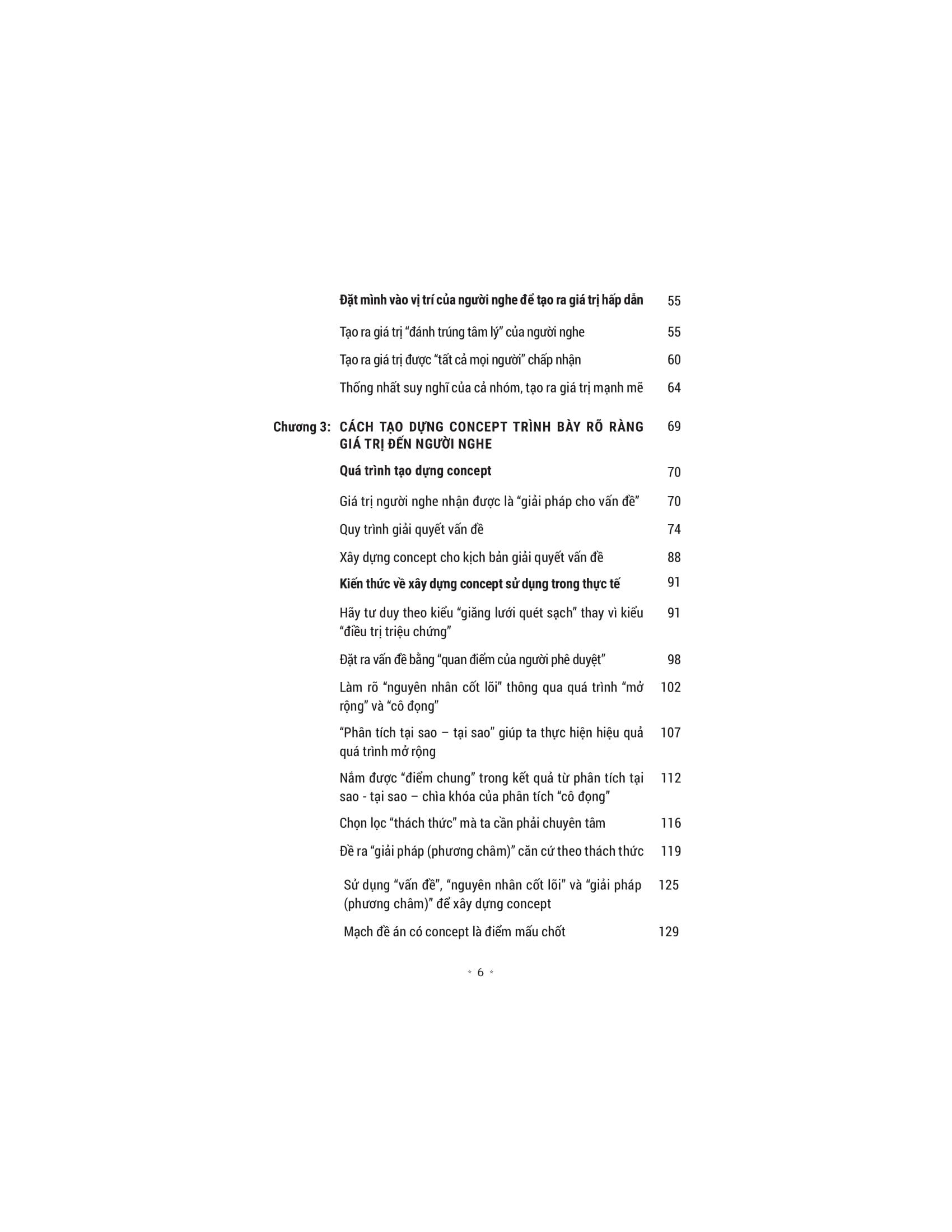 Chìa khóa cho vấn đề nằm ở việc nắm vững tư duy cũng như kỹ thuật để xây dựng ý tưởng chủ đạo, tạo ra các giá trị tiềm năng cho người nghe, đồng thời truyền tải chúng một cách ngắn gọn nhưng hiệu quả. Khi trình bày thuyết phục rành mạch, với kế hoạch rõ ràng xác đáng cùng kết quả thực tế khả thi, chắc chắn đề xuất của bạn sẽ dẽ dàng “chạm đích”. Cuốn sách với sáu chương ngắn gọn tập trung vào một kỹ thuật được gọi là «Thuyết trình đơn giản », một kỹ thuật cân bằng giữa việc tạo ra giá trị hấp dẫn và việc trình bày nó một cách rõ ràng dễ hiểu.