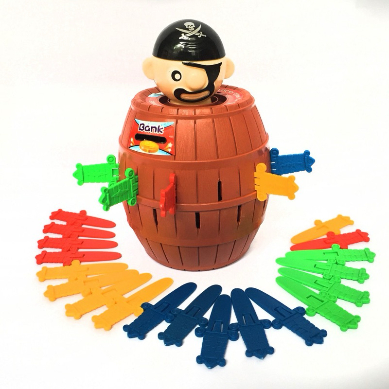 - Bộ trò chơi Đâm Hải Tặc bao gồm một chú Hải Tặc với chiếc mũ bịt mắt và râu ria, cùng 24 thanh kiếm được chia thành 4 màu sắc khác nhau gồm đỏ, vàng, xanh dương và xanh lá cây. Một thùng rượu lớn với nhiều lỗ trên bề mặt để đặt các thanh kiếm hoàn thành bộ trò chơi đầy hấp dẫn này.