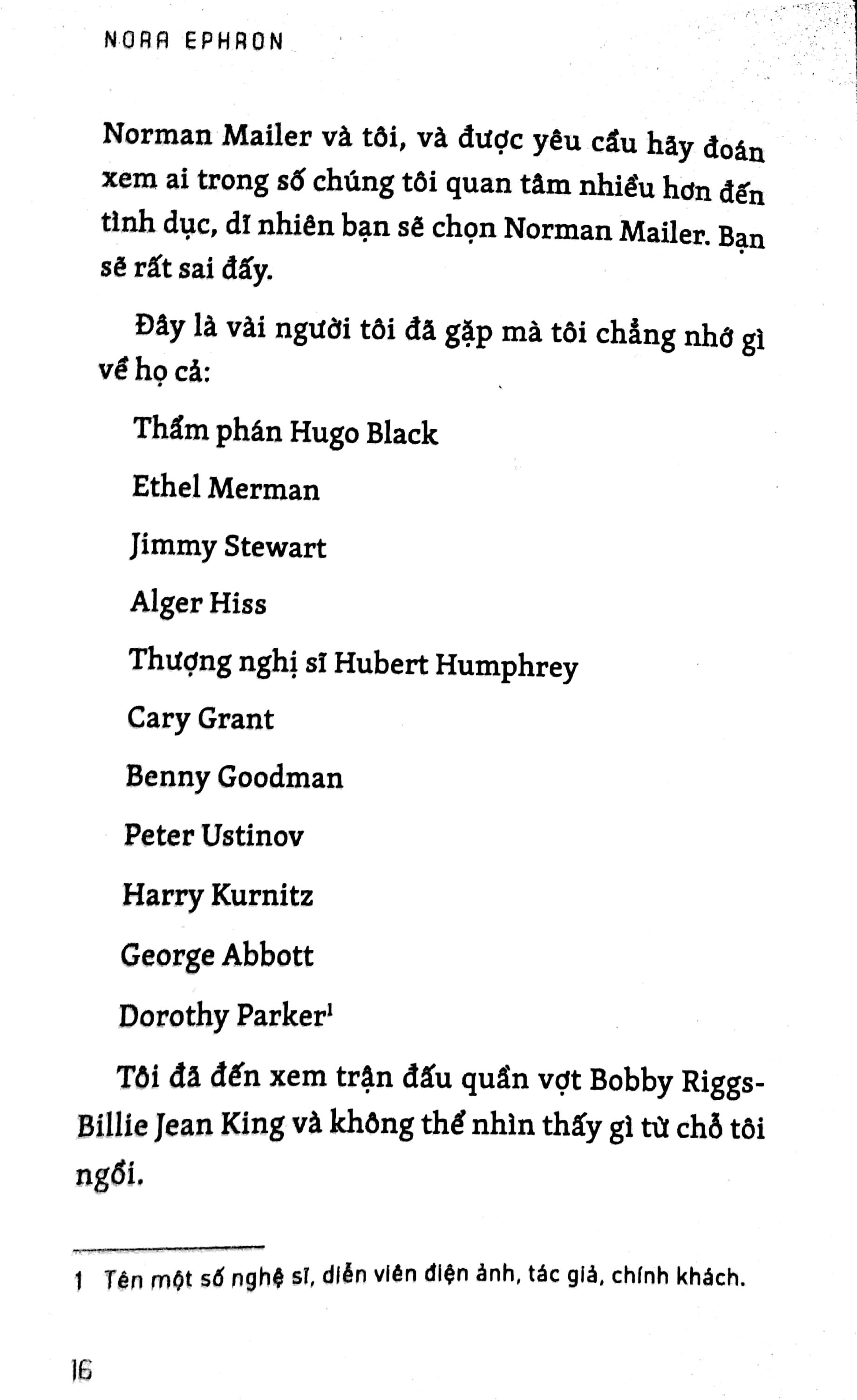 Cái nhìn dí dỏm về đời sống trong quá khứ, hiện tại và tương lai, gợi nhắc về những gì đã qua bằng sự mẫn tiệp, mạch lạc trong suy nghĩ. Những thấu đáo và quan sát thoạt nghe đã thấy có lý, chỉ có thể là Nora Ephron .