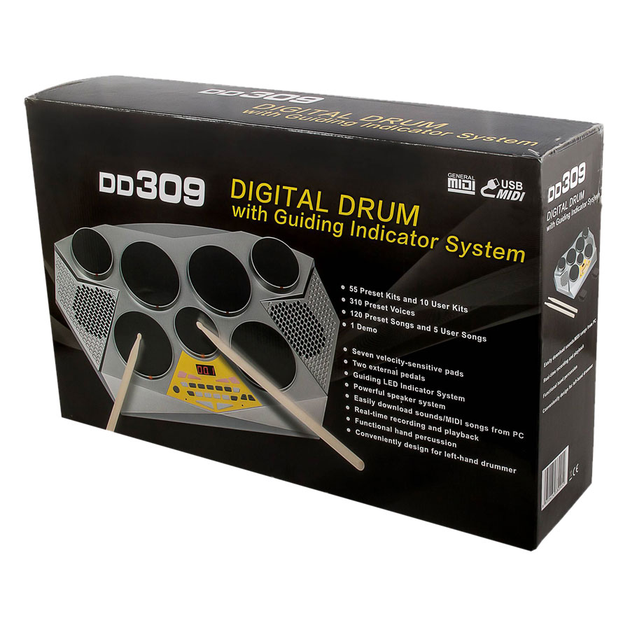 - Trống Điện Tử Medeli DD309 là lựa chọn tuyệt vời cho những người đam mê chơi trống và đang bắt đầu tập chơi. - Giao diện điều khiển với 7 mặt trống cảm ứng, 2 bàn đạp,