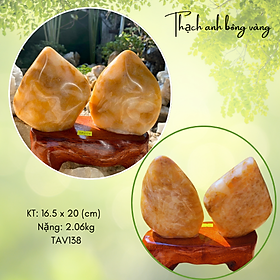 Hợp mệnh Thổ - Kim Chất liệu: Tinh thể thạch anh vàng Khối lượng: 1,12 kg; 1,15 kg; 1,2 kg; 1,26 kg; 1,32 kg; 1,35 kg và 1,37 kg Kích thước: Cao 13,5 cm; 14
