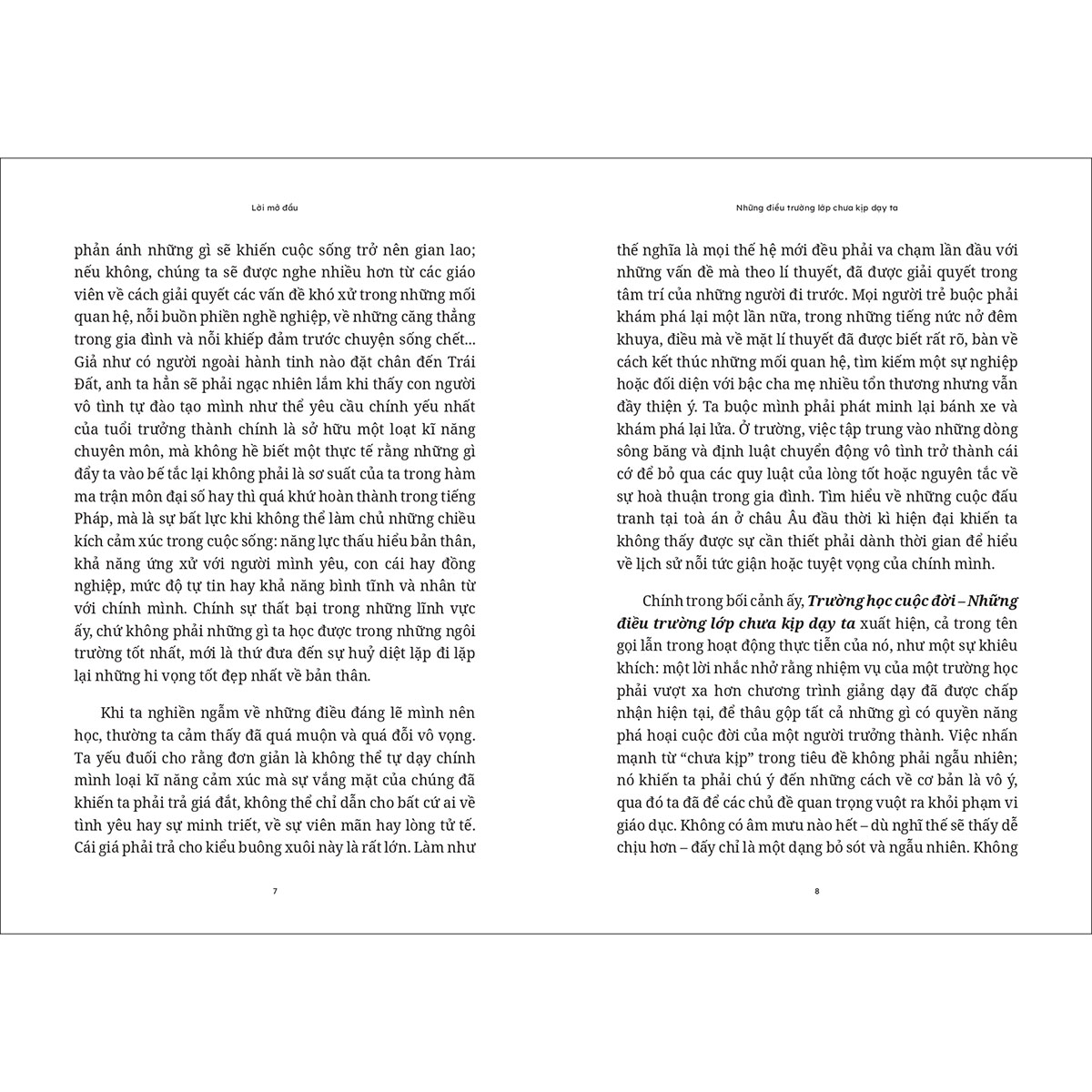 Xuyên suốt khoảng thời gian dài ngồi trên ghế trường học hay giảng đường đại học, chúng ta miệt mài chăm chút nền tảng kiến thức để học tập, nghiên cứu và phục vụ công việc trong tương lai. Kì lạ là bất chấp sự thật rằng chúng ta cần mẫn đến thế nào trong những năm tháng học, thì khi bước chân ra ngoài xã hội, chúng ta vẫn cảm thấy băn khoăn và rối bời và tự hỏi vì sao chúng ta không “được học” về những điều thực sự quan trọng chi phối và gây rắc rối cho cuộc sống.