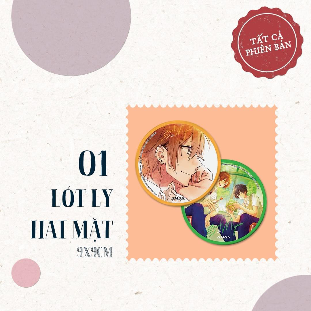 Bản giới hạn: 1 Bookmark, 1 Postcard Ivory bồi đôi, 01 lót ly 2 mặt ,1 photo strip PVC, giá đỡ điện thoại acrylic (KT 7.2x14cm), 1 poster A3, tem chính hãng độc quyền Kadokawa. Giá bìa: 169.000đ