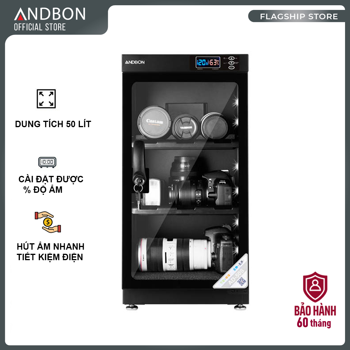 ✨Tủ chống ẩm máy ảnh 50 Lít ANDBON AD-50S , 3 ngăn chống xước, cài đặt được % độ ẩm - Hàng chính hãng