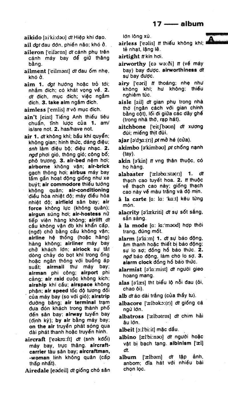 Từ Điển Anh - Việt (225.000 Mục từ và định nghĩa) cung cấp danh sách các từ (được sắp xếp theo thứ tự ABC), giải thích rõ ràng cụ thể các vấn đề có liên