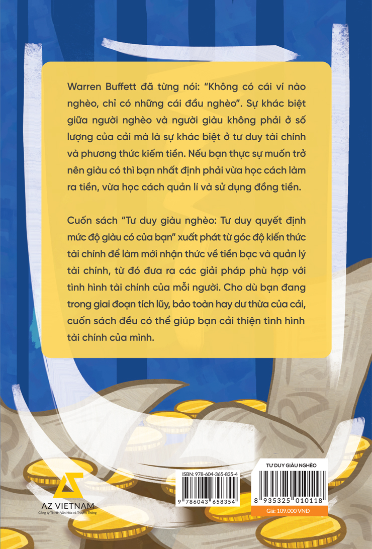 Warren Buffett đã từng nói: “Không có cái ví nào nghèo, chỉ có những cái đầu nghèo”. Sự khác biệt giữa người nghèo và người giàu không phải ở số lượng của cải mà là sự khác biệt ở tư duy tài chính và phương thức kiếm tiền. Nếu bạn thực sự muốn trở nên giàu có thì bạn nhất định phải vừa học cách làm ra tiền, vừa học cách quản lí và sử dụng đồng tiền. Cuốn sách “Tư duy giàu nghèo: Tư duy quyết định mức độ giàu có của bạn” xuất phát từ góc độ kiến thức tài chính để làm mới nhận thức về tiền bạc và quản lý tài chính, từ đó đưa ra các giải pháp phù hợp với tình hình tài chính của mỗi người. Cho dù bạn đang trong giai đoạn tích lũy, bảo toàn hay dư thừa của cải, cuốn sách đều có thể giúp bạn cải thiện tình hình tài chính của mình.