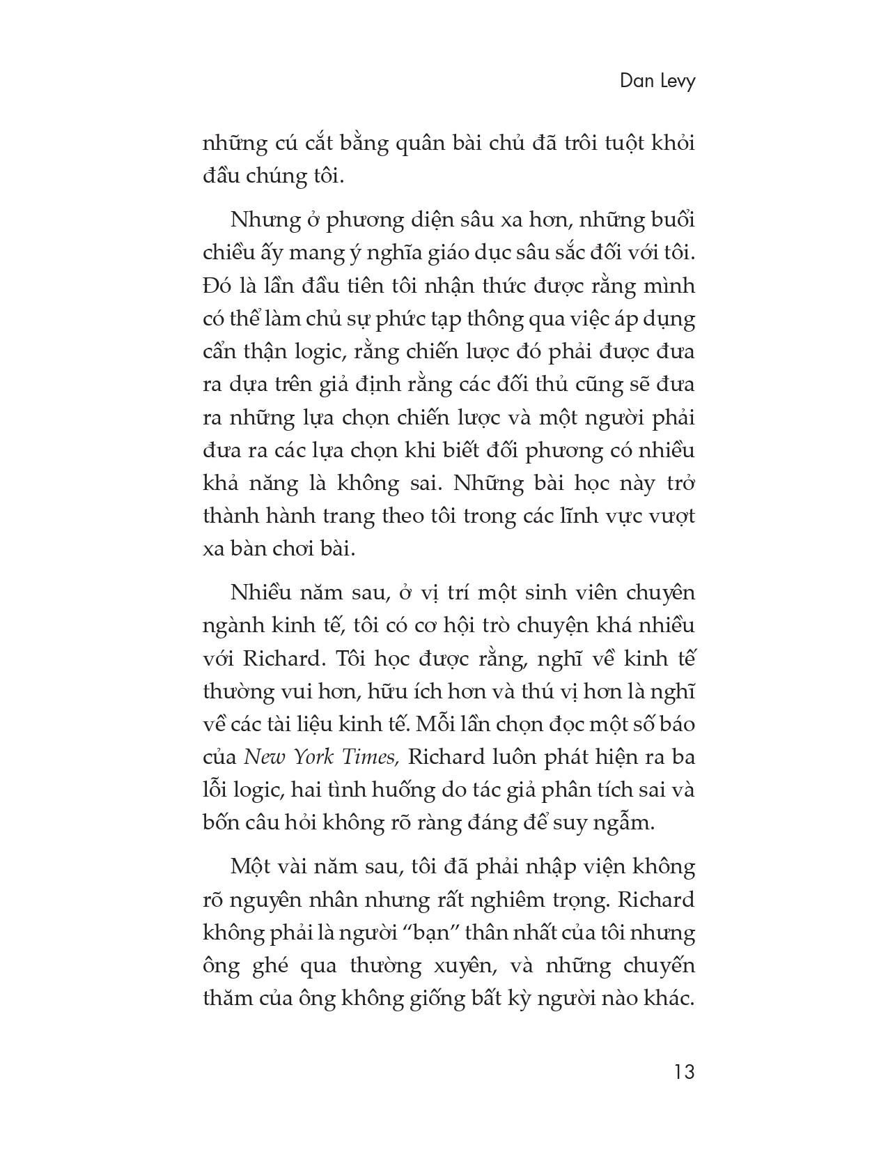 - Về Richard Zeckhauser: Richard Zeckhauser là một nhà kinh tế học người Mỹ và là Giáo sư Kinh tế Chính trị Frank P. Ramsey tại Trường Chính phủ Kennedy thuộc Đại học Harvard. Ông là một người tài năng xuất chúng với những đóng góp quan trọng về lý thuyết kinh tế, kinh tế học công cộng, phân tích quyết định, kinh tế học hành vi và nhiều mảng khác của khoa học xã hội.