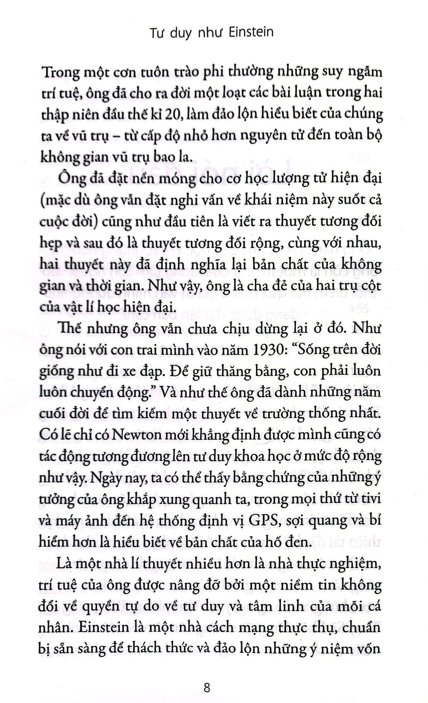 Trong cuốn sách tràn đầy cảm hứng này, mời bạn khám phá phương pháp độc đáo của Einstein để giải mã những bí ẩn vĩ đại của khoa học ở thời đại ông, theo dấu những ý tưởng và nguồn ảnh hưởng đã góp phần định hình nên cá tính và quan niệm của ông, cũng như phân tích để biết được cách áp dụng những phương pháp và cách làm của Einstein vào mọi mặt đời sống. Như vậy, ngay cả bạn cũng có thể học cách tư duy như người mà thế giới đã vinh danh là “thiên tài” đó!