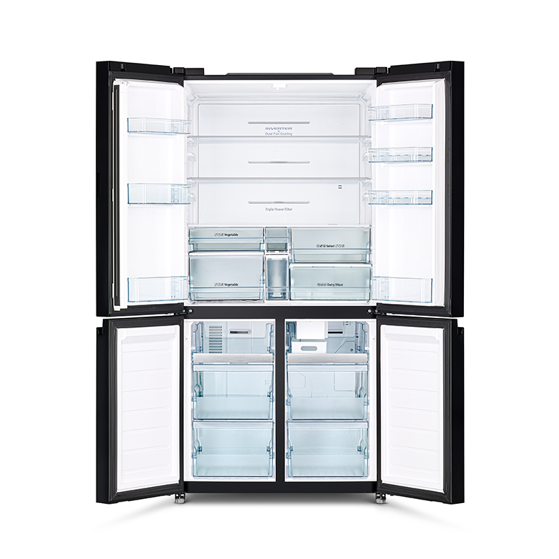 - Kiểu tủ Multi Door 4 cánh rộng rãi, ngăn đá bên dưới dễ sử dụng và tiện lợi.