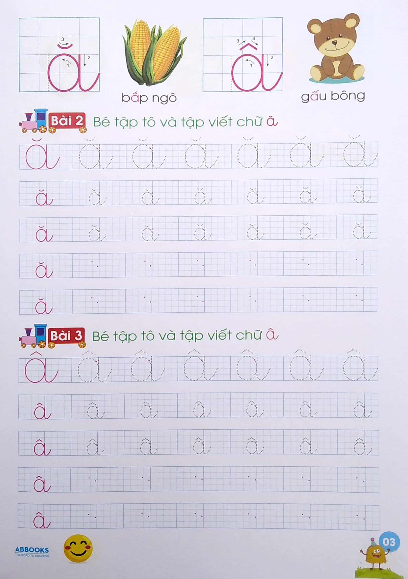 Mỗi mẫu chữ đều có hướng dẫn từng nét cụ thể giúp bé dễ dàng tập viết. Phần luyện tập có nét mờ sẽ giúp các bé ghi nhớ lâu hơn.