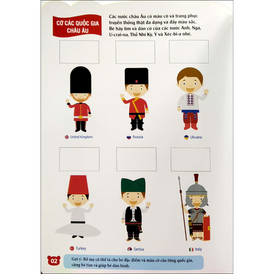 ✨Tủ Sách Rèn Luyện Kỹ Năng Cho Trẻ Trước Tuổi Đến Trường (2-6 Tuổi) Bóc Dán Hình Thông Minh IQ-EQ-CQ 150 Miếng Dán Hình Thông Minh - Cờ Các Quốc Gia Trên Thế Giới (Tái Bản)