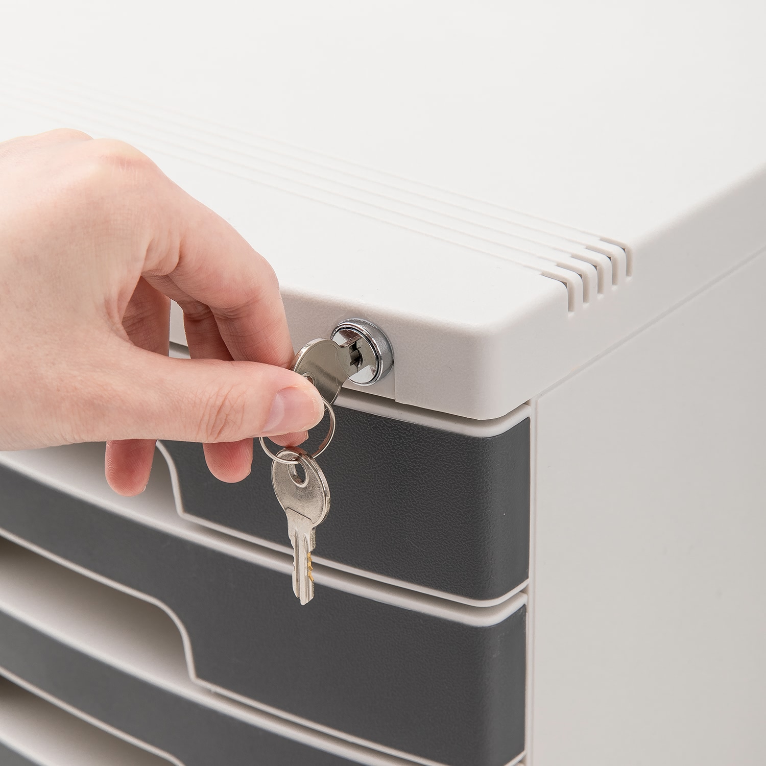 Chất liệu: PP + GPPS Cấu trúc chắc chắn giúp sử dụng thời gian dài Khóa giúp bảo mật cao Ngăn kéo màu trong giúp dễ dàng nhìn bên trong Ngăn kéo phân file giúp