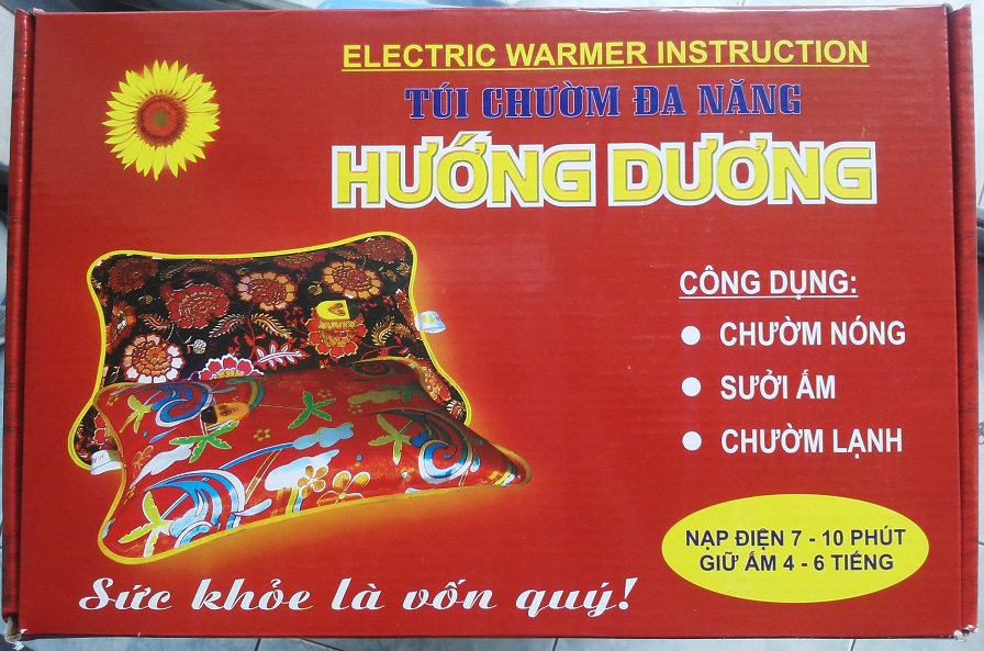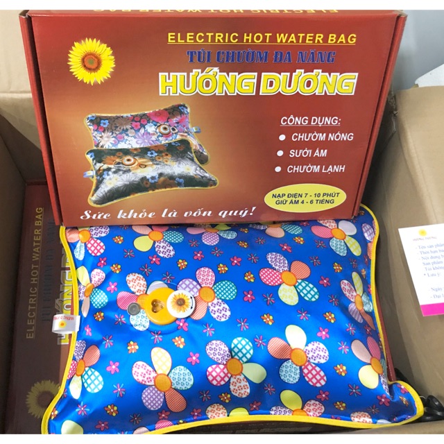 Túi Chườm nóng lạnh đa năng Hướng Dương Cỡ lớn (37X26X7 cm)   Vào mùa lạnh, người già, trẻ em, phụ nữ sau sinh rất cần được ủ ấm, nhất là về đêm và sáng sớm.  Nếu được giữ ấm cho cơ thể, nhất là.các chỗ quan trọng như khớp, bàn chân, bàn tay.  Do vậy, khi mùa đông đến, nhiều người sử dụng các biện pháp sưởi ấm.như máy sưởi, quạt sưởi, túi sưởi...  Tuy nhiên với hình thức nhỏ.gọn, dễ sử dụng, .túi sưởi đa năng vẫn là sản phẩm tối ưu nhất. Túi chườm đa năng.  *Hướng dương là những sản phẩm hàng Việt Nam chất lượng cao đã.có uy tín trên thị trường hàng chục năm.    Công dụng - Túi có khả năng giữ ấm lâu trong mùa đông - Thời gian làm nóng nhanh - Có đèn sáng báo hiệu túi đang nạp nhiệt - Rất tốt khi sử dụng cho người già, trẻ em.  - Hàng túi sưởi Việt Nam có thời gian bảo hành sản phẩm: 6.tháng   Kích thước sản phẩm Dài x rộng x cao: - Cỡ lớn: 37x27x7 cm - Cỡ trung 34x25x7 cm - Cỡ nhỏ 28x24x7 cm + Màu.sắc: Ngẫu nhiên    Cách sử dụng Chườm nóng: nạp điện 5-10p để túi đạt nhiệt độ ~70o rồi lấy chườm  Chườm lạnh: Đặt túi chườm vào tủ lạnh 2-3h rôì lấy ra sử dụng   MEDIFA CAM KẾT  - Sản phẩm nhập khẩu chính hãng, nguyên tem mác, phụ kiện đi kèm. - MEDIFA chịu phí ship hoàn hàng nếu sản phẩm không như cam kết (Quý khách vui lòng quay clip mở hàng để đảm bảo quyền lợi hoàn hàng)