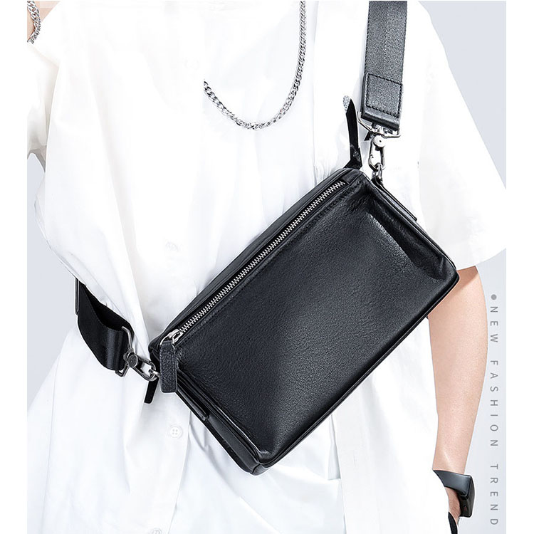 Túi đeo chéo nam ngang nhỏ gọn cao cấp BHM2030 Khá tiện dụng với thiết kế hình hộp chữ nhật gọn gàng cùng màu đen đơn giản dễ dàng kết hợp mọi phong cách thời