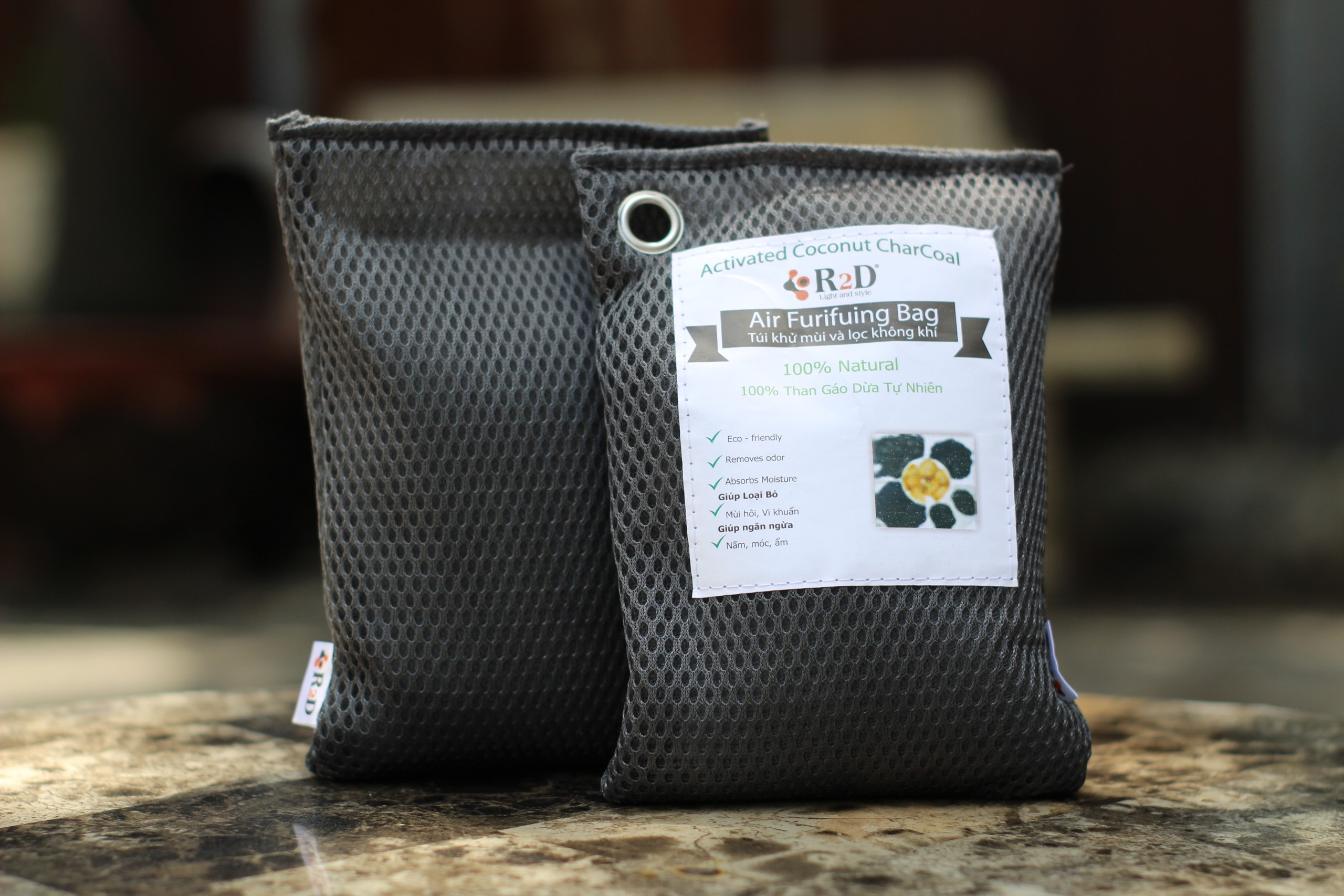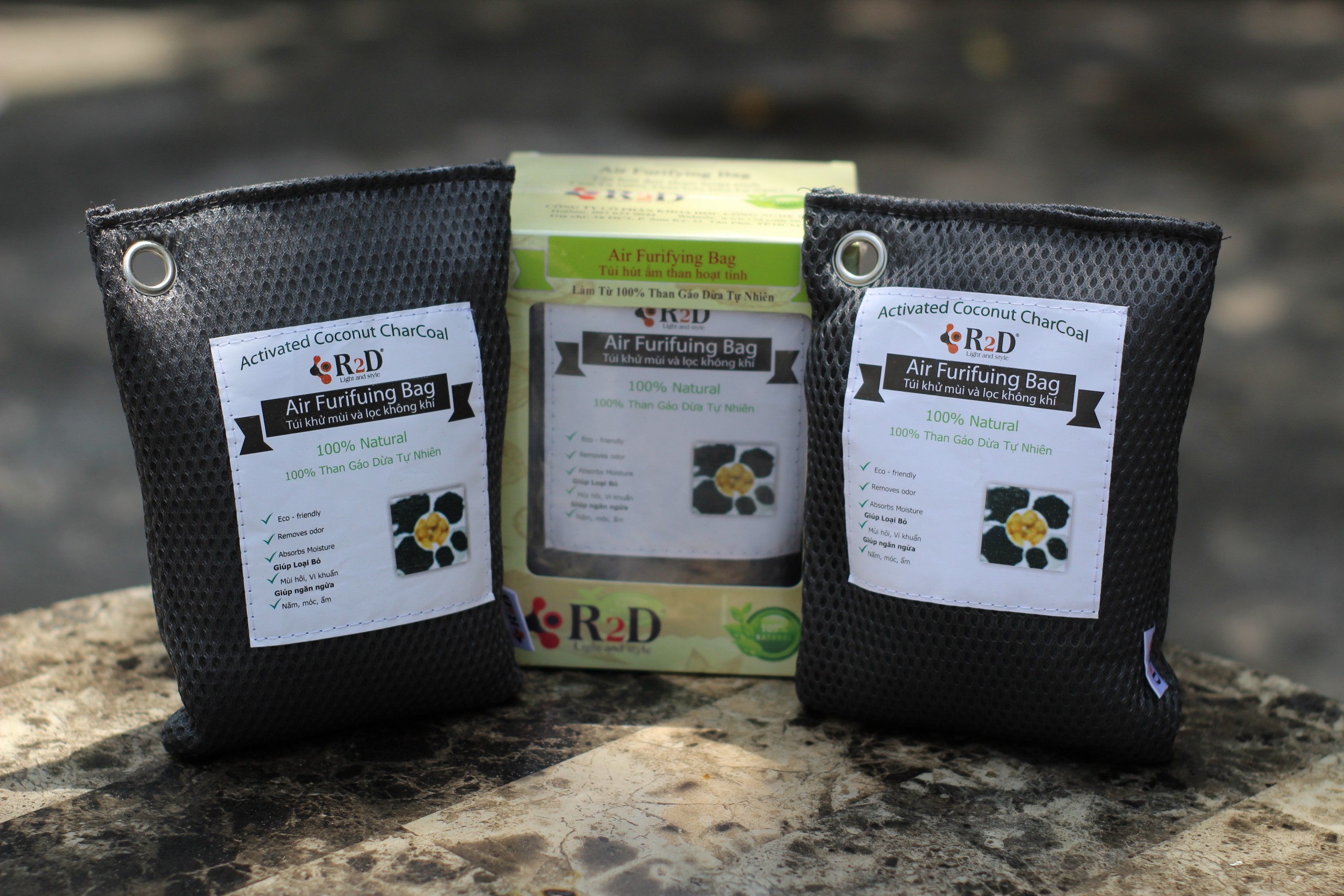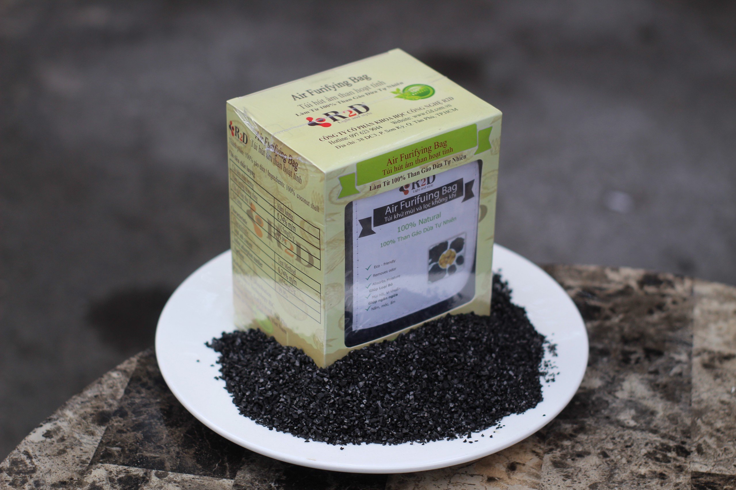 ✨Túi hút ẩm than hoạt tính gáo dừa khử mùi và lọc không khí cho xe hơi chính hãng R2D (hộp 2 túi Lớn)