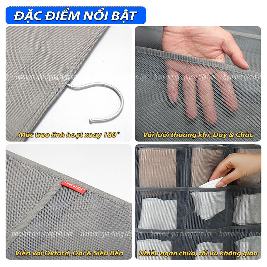 Bạn đã không ít lần cảm thấy bực bội, mất thời gian khi phải lục tung tủ để tìm đồ lót, tất vớ, quần áo ... hay đau đầu tìm những vật dụng nhỏ thất lạc đâu đó trong phòng. Có 1 giải pháp vô cùng đơn giản cho vấn đề này - Đó chính là túi treo đồ đa năng 12 ô mặt trước và 18 ô mặt sau tiện lợi, giúp bạn tổ chức sắp xếp gọn gàng những vật dụng nhỏ thiết yếu trong gia đình - Tặng Kèm móc dán tường & đinh nhựa để bạn tiện sử dụng ngay khi nhận hàng