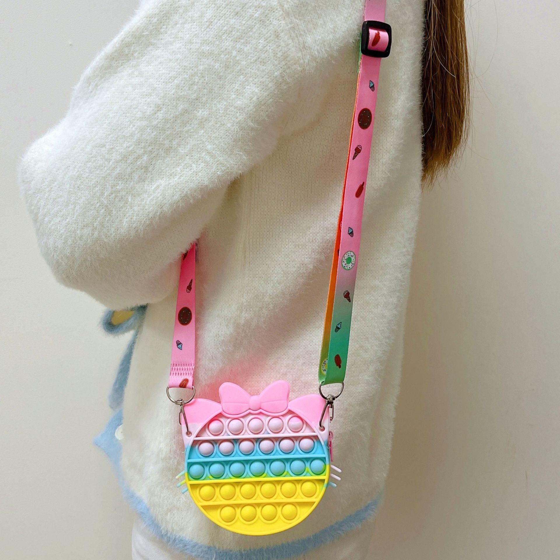 Túi ví Pop It Dễ Thương, Túi Trang Điểm dành cho các bé gái cute đáng yêu Món đồ chơi pop fidget yêu thích hình tròn màu pastel dễ thương, kèm dây đeo, phụ kiện