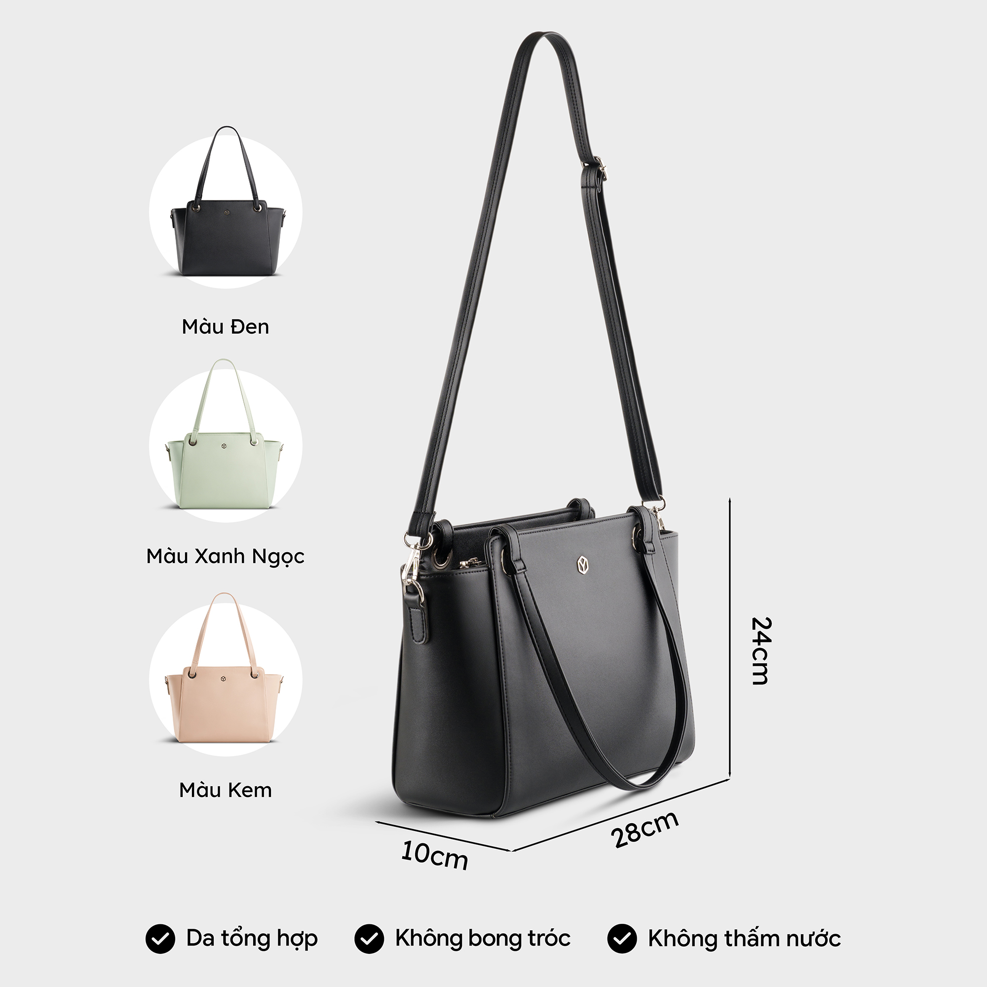Túi xách da nữ công sở thanh lịch hình chữ nhật Yuumy YTX51 rất phù hợp với chị em nhân viên văn phòng bởi thiết kế bản lớn với khoang túi bên trong rộng rãi, có nhiều ngăn nhỏ giúp việc sắp xếp ngăn nắp, tiện dụng. Sản phẩm được làm từ chất liệu da tổng hợp cao cấp không chỉ bền, đẹp mà còn chống thấm nước, chống xước hiệu quả. Sản phẩm có 3 gam màu hiện đại rất dễ phối đồ, phù hợp mang theo không chỉ lúc đi làm mà những lúc đi chơi, đi du lịch, đi mua sắm, đi cà phê cũng rất đẹp, vừa tôn lên phong cách chỉnh chu, vừa tỏa ra khí chất phóng khoáng của người dùng. THÔNG SỐ KỸ THUẬT: