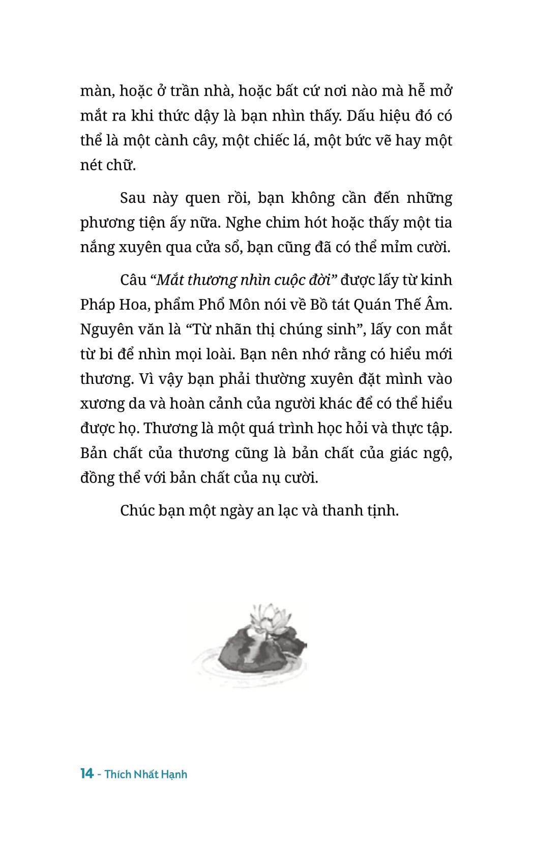 Từng bước nở hoa sen của Thiền sư Thích Nhất Hạnh là một trong những quyển sách "dạy" ta cách sống an nhiên như thế. Bốn mươi bảy bài kệ trong sách cũng là bốn mươi bảy bài học giúp ta tu tập chánh niệm mỗi ngày, hướng đến sự an lạc trong cả tâm, thân và sống hết mình cho từng giây phút hiện tại.
