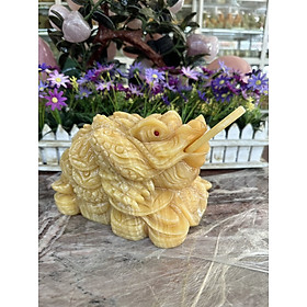 Chất liệu: Đá vàng cà rốt Kích thước: Dài 20 cm x Rộng 11 cm x Cao 11 cm Khối lượng: 3 kg Thiềm Thừ được người xưa gọi là Cóc tài lộc, Cóc ba
