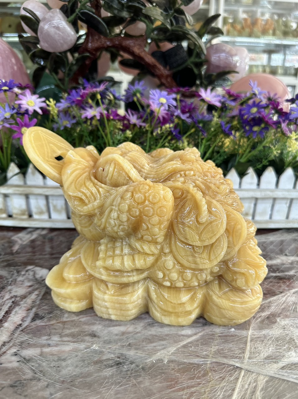 Chất liệu: Đá ngọc hoàng long Kích thước: Dài 20 cm x Rộng 16 cm x Cao 14 cm Khối lượng: 7,4 kg