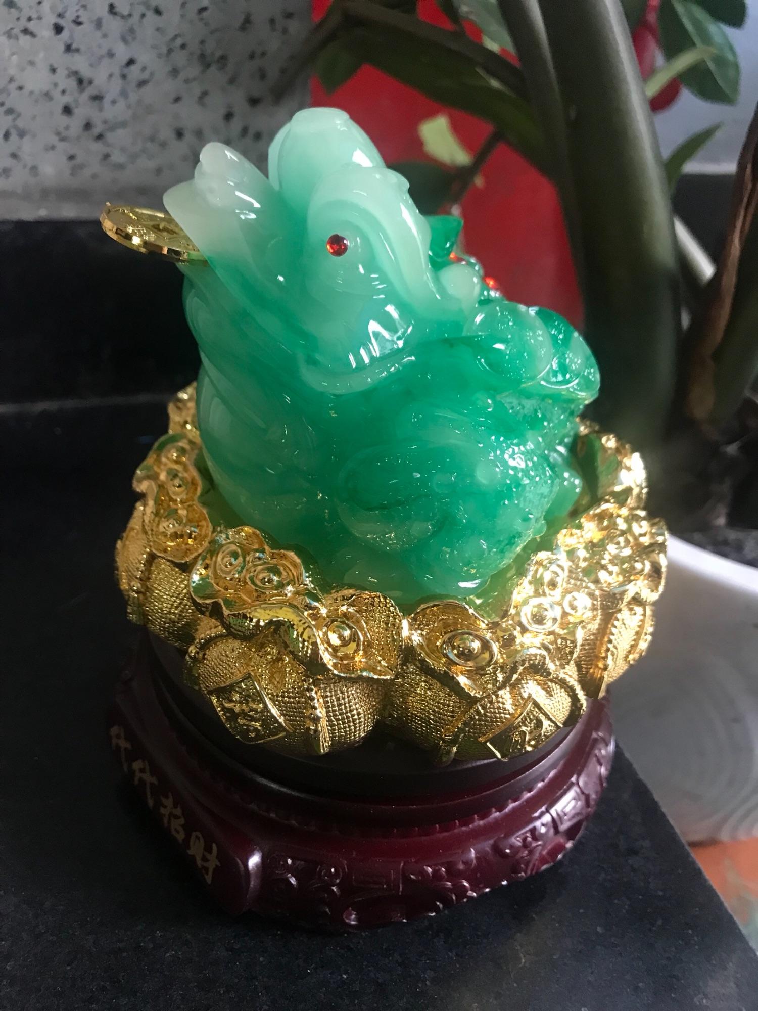 ✨Tượng Cóc Thiềm Thừ Xanh Ngọc Sáng Đẹp Ngậm Tiền Trên Hủ Tiền Thỏi Vàng Đế Gỗ Xoay Size Cao 17cm đk 14cm hợp mệnh mộc mệnh hỏa anh chị để bàn làm việc hay bàn thờ thần tài ạ