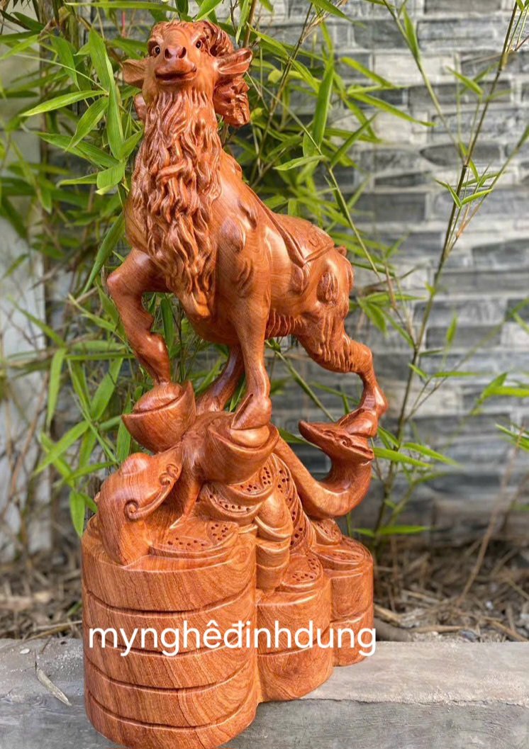 Tượng Nhất Dương Tài Lộc gỗ Ngọc am, Tượng Dê gỗ ngọc am đục tay thủ công ĐT/Zalo:0983.936.273
