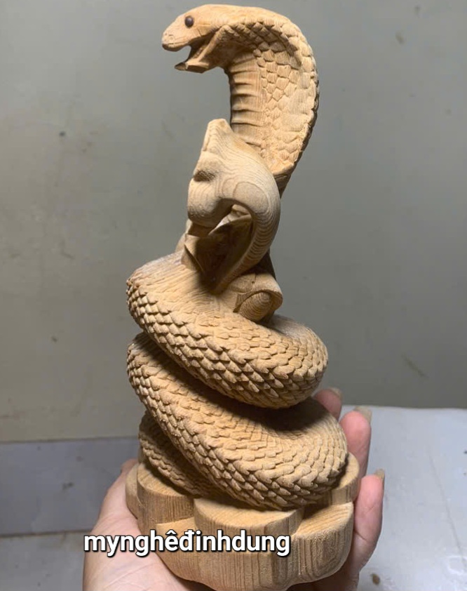 Tượng con rắn phong thủy cầu tài lộc được làm bằng chất liệu gỗ ngọc am liền khối tự nhiên 100% kt cao 20x10x7cm _ Tượng được chạm khắc gọt tỉa vô cùng tỉ mỉ tinh xảo kỳ công. Đi hầu hết tất mọi chi tiết góc ngách nội dung hoa văn của tượng đều được gọt tỉa chỉnh sửa sắc nét hoàn toàn bằng tay thủ công truyền thống.